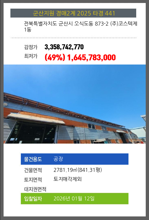 본건은 전북특별자치도 군산시 오식도동 873-2 (주)코스텍제1동