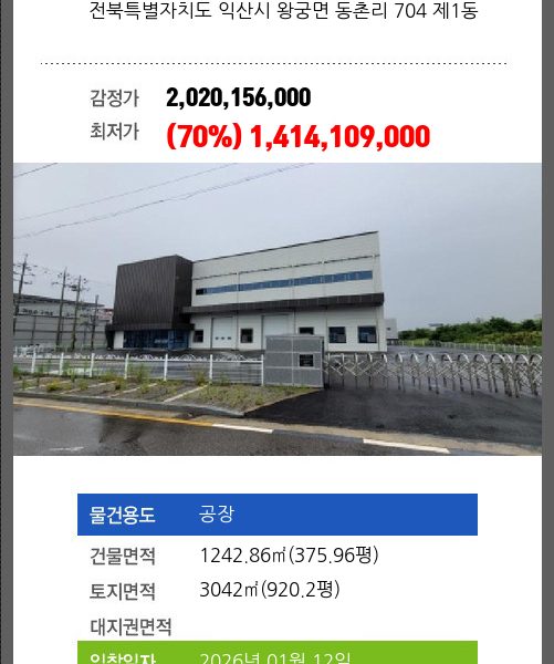 | 용도 | 공장 | 채권자 | 군** | 감정가 | 3,358,742,770 |