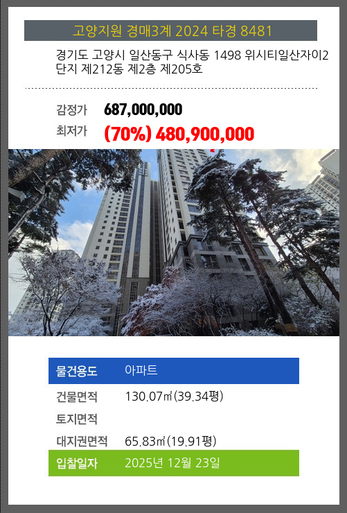 고양아파트경매 고양시 일산동구 식사동 1498 위시티일산자이2단지 제212동 제2층 제205호 №2024 타경 8481