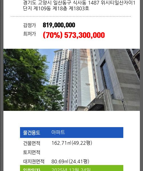 매각대상 공시가격3~4억 경매종류 임의경매 사건접수일 2024-11-13