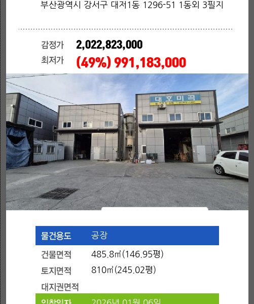 | 소재지 | [지번] 부산광역시 강서구 송정동 1735-2 부산청정도금센터 제1층 제109호외 1개호 [도로명 주소] 부산광역시 강서구 녹산산단382로14번가길 20 부산청정도금센터 제1층 제109호외 1개호 |