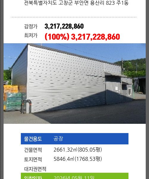 정읍공장경매 정읍시 하북동 861-3 №2025 타경 191
