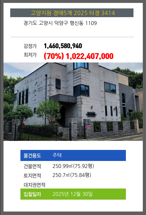 고양주택경매 고양시 덕양구 행신동 1109 №2025 타경 3414
