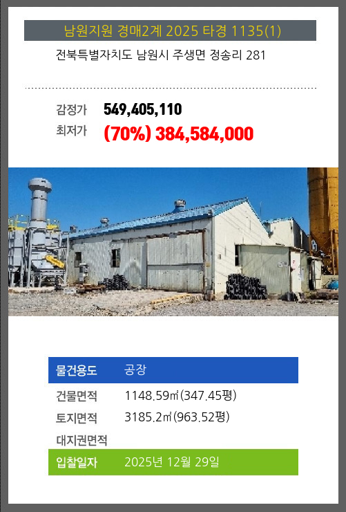 남원공장경매 남원시 주생면 정송리 281 №2025 타경 1135(1)