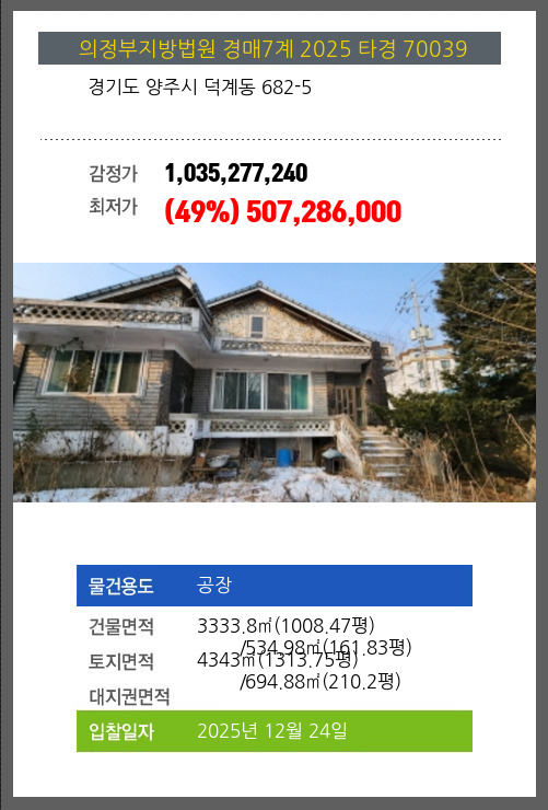 양주공장경매 양주시 덕계동 682-5 №2025 타경 70039