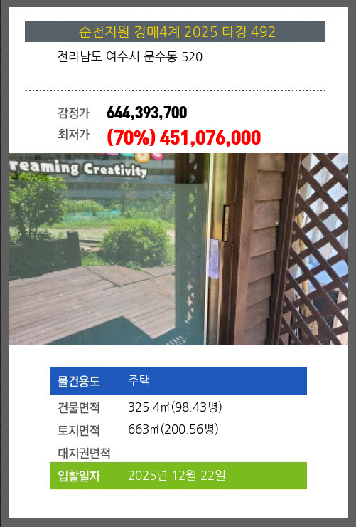 | 신건 | 2025-11-10 | 644,393,700 | 유찰 |