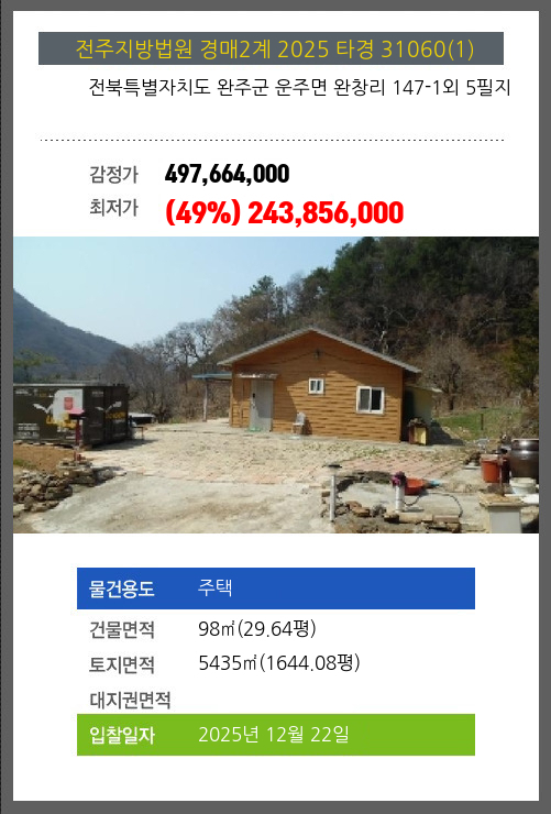 본건은 전북특별자치도 완주군 운주면 완창리 147-1외 5필지