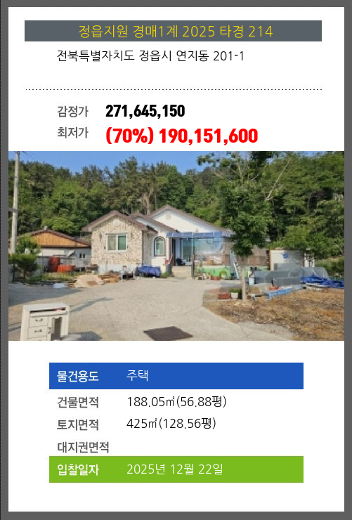 정읍주택경매 정읍시 연지동 201-1 №2025 타경 214
