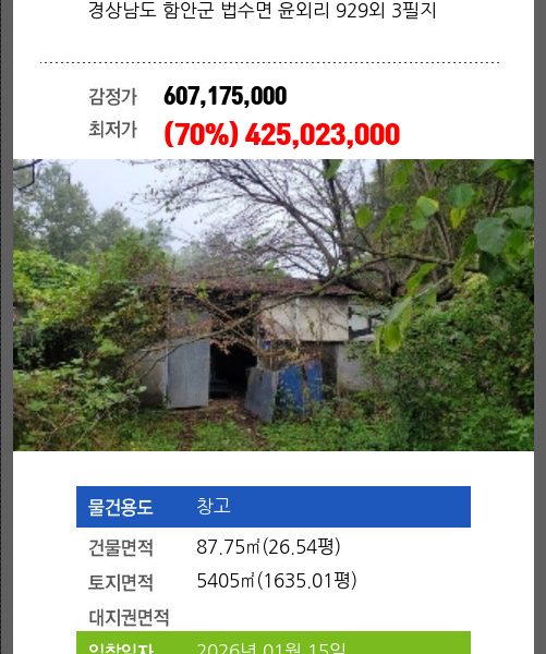 | 용도 | 공장 | 채권자 | 에** | 감정가 | 721,467,850 |