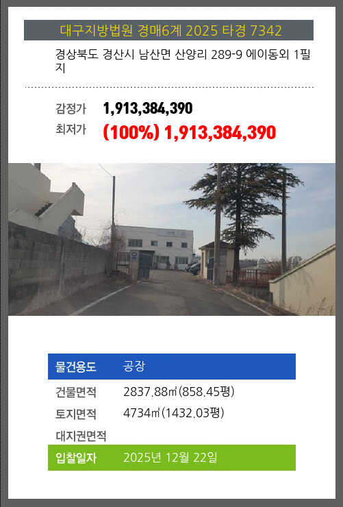 본건은 경상북도 경산시 남산면 산양리 289-9 에이동외 1필지