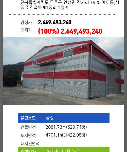 | 용도 | 공장 | 채권자 | 중** | 감정가 | 5,133,917,240 |