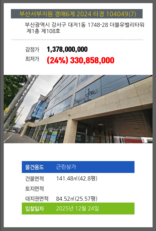본건은 부산광역시 강서구 대저1동 1748-28 더블유밸리타워 제1층 제108호