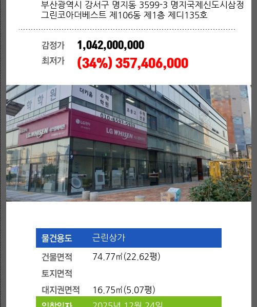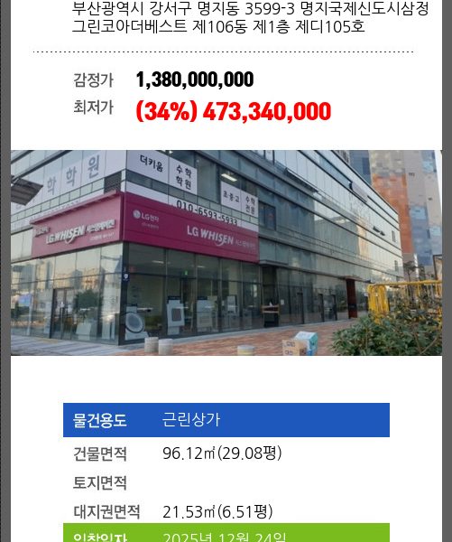 | 용도 | 근린상가 | 채권자 | 부** | 감정가 | 1,378,000,000 |
