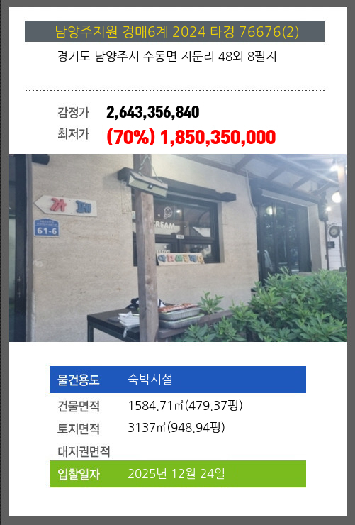 남양주숙박시설경매 남양주시 수동면 지둔리 48외 8필지 №2024 타경 76676(2)