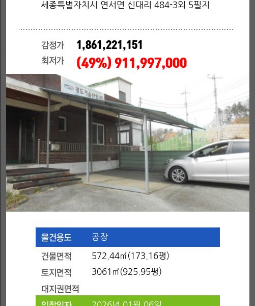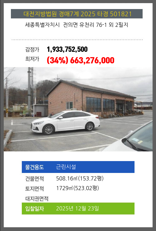시설경매 전의면 유천리 76-1 외 2필지 №2025 타경 501821