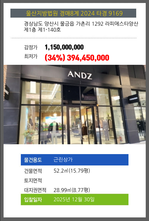 | 용도 | 근린상가 | 채권자 | 울** | 감정가 | 1,150,000,000 |