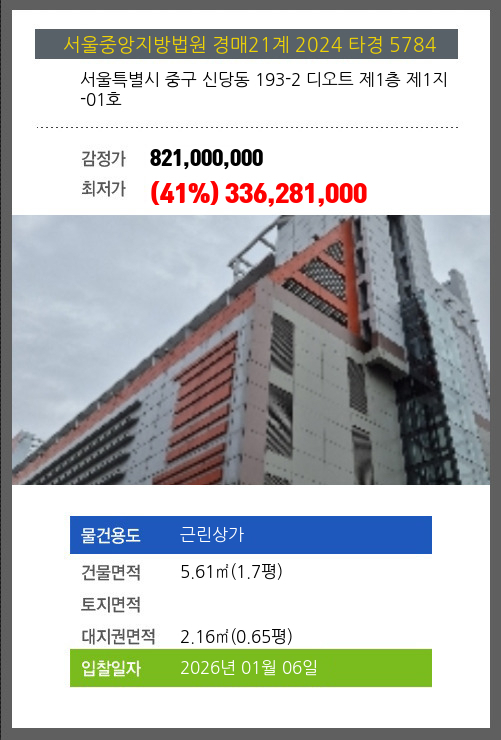 본건은 서울특별시 중구 신당동 193-2 디오트 제1층 제1지-01호