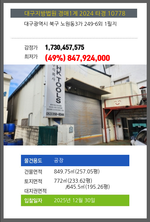 북공장경매 북구 노원동3가 249-6외 1필지 №2024 타경 10778