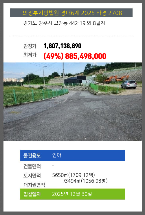 양주임야경매 양주시 고암동 442-19 외 8필지 №2025 타경 2708