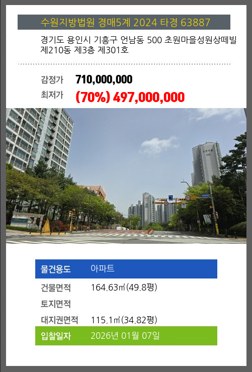 용인아파트경매 용인시 기흥구 언남동 500 초원마을성원상떼빌 제210동 제3층 제301호 №2024 타경 63887