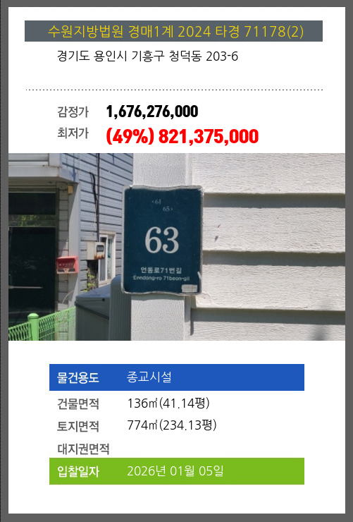 용인종교시설경매 용인시 기흥구 청덕동 203-6 №2024 타경 71178(2)