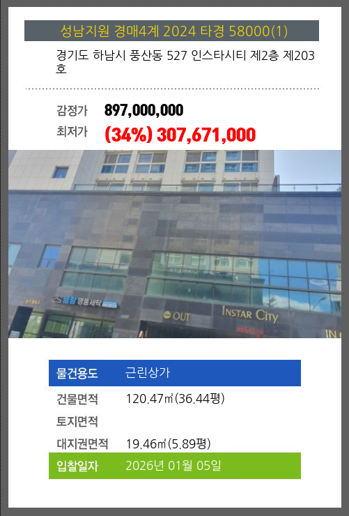 본건은 경기도 하남시 풍산동 527 인스타시티 제2층 제203호