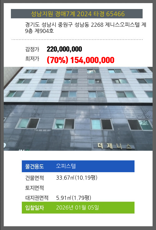 성남오피스텔경매 성남시 중원구 성남동 2268 제니스오피스텔 제9층 제904호 №2024 타경 65466