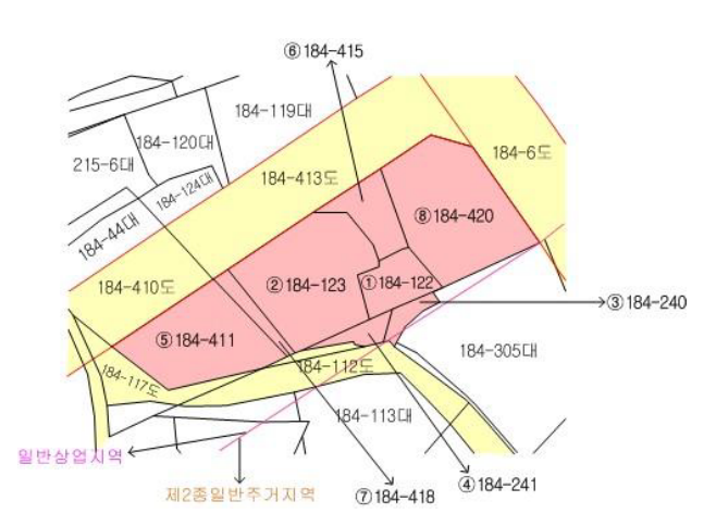 본건은 경상남도 밀양시 삼문동 184-122 외 7필지