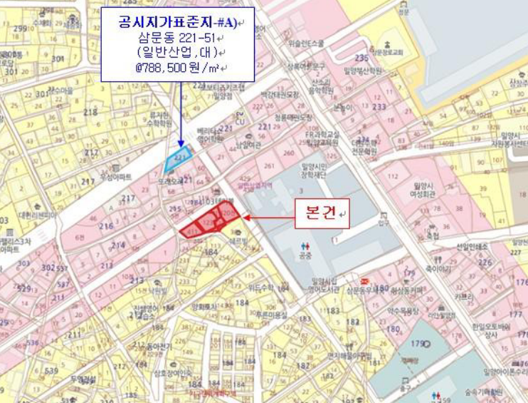 | 소재지 | [지번] 경상남도 밀양시 삼문동 184-122 외 7필지 | ||||