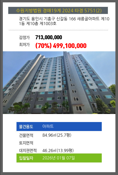 용인아파트경매 용인시 기흥구 신갈동 166 새릉골아파트 제101동 제10층 제1003호 №2024 타경 5751(2)