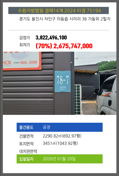 용인공장경매 용인시 처인구 이동읍 시미리 38 가동외 2필지 №2024 타경 75194