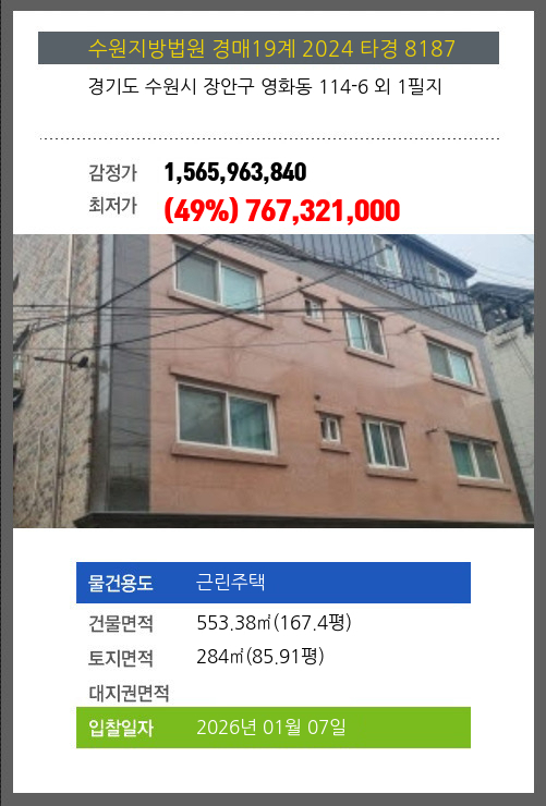 본건은 경기도 수원시 장안구 영화동 114-6 외 1필지