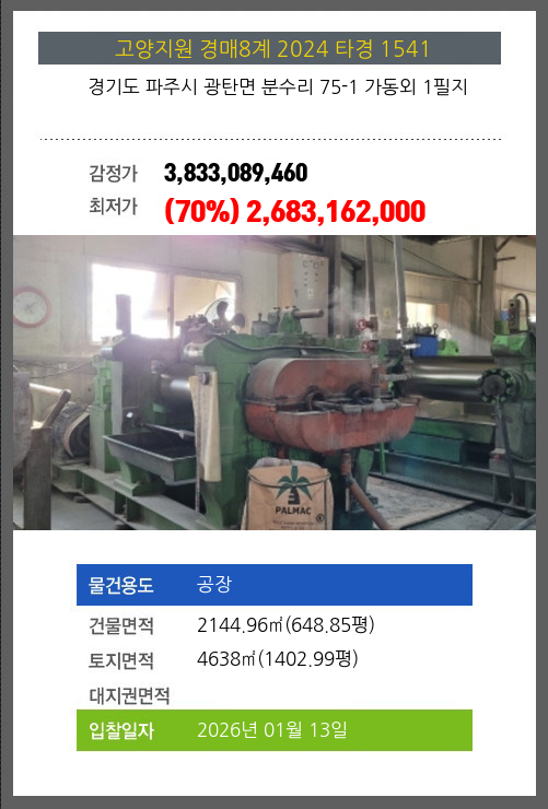 파주공장경매 파주시 광탄면 분수리 75-1 가동외 1필지 №2024 타경 1541