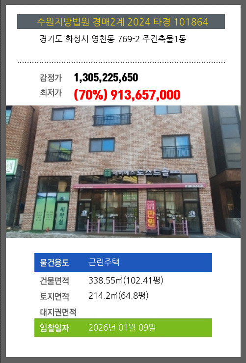 화성주택경매 화성시 영천동 769-2 주건축물1동 №2024 타경 101864