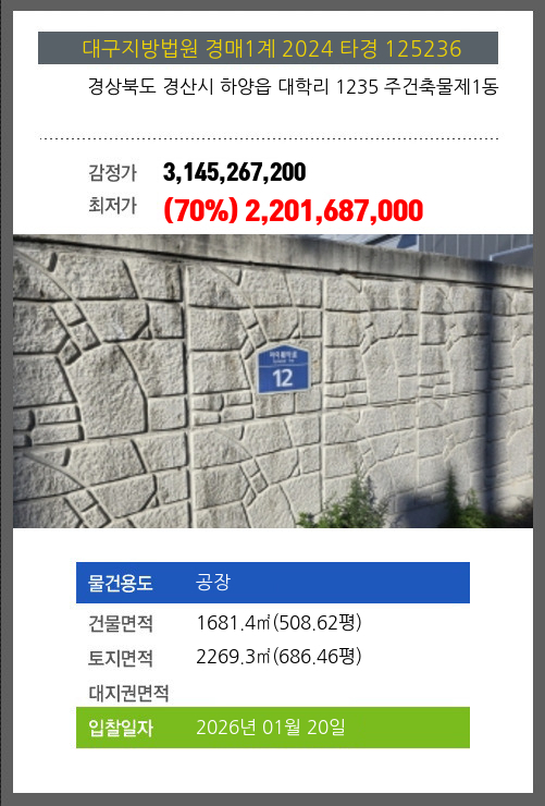 본건은 경상북도 경산시 하양읍 대학리 1235 주건축물제1동