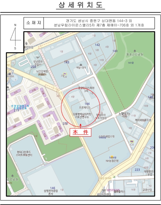 소재지 [지번] 경기도 성남시 중원구 상대원동 144-3 성남우림라이온스밸리5차 제7층 제에이-706호외 1개호