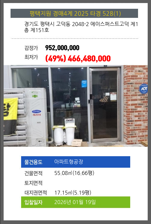 본건은 경기도 평택시 고덕동 2048-2 에이스퍼스트고덕 제1층 제151호