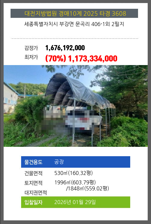부강공장경매 부강면 문곡리 406-1외 2필지 №2025 타경 3608