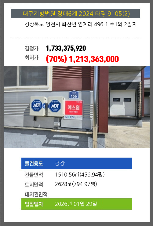 영천공장경매 영천시 화산면 연계리 496-1 주1외 2필지 №2024 타경 9105(2)