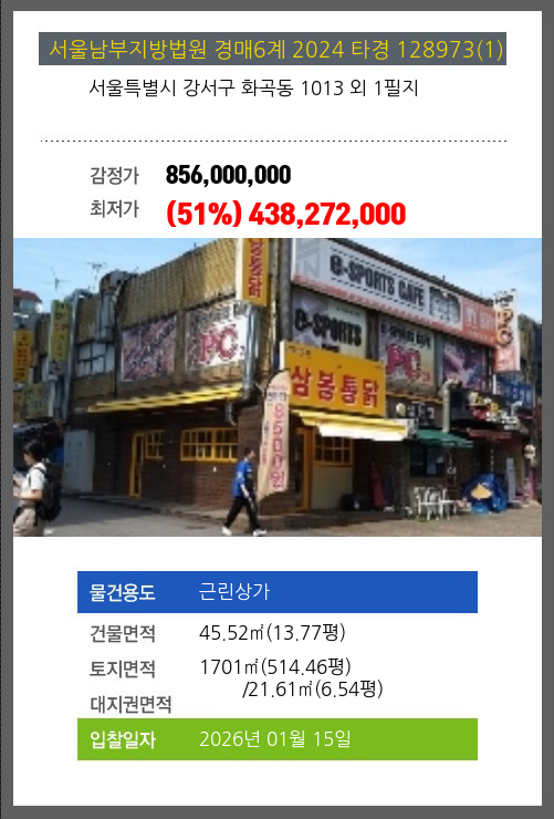 강서상가경매 강서구 화곡동 1013 외 1필지 №2024 타경 128973(1)