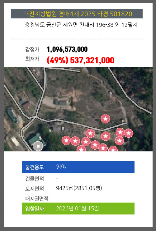 본건은 충청남도 금산군 제원면 천내리 196-38 외 12필지