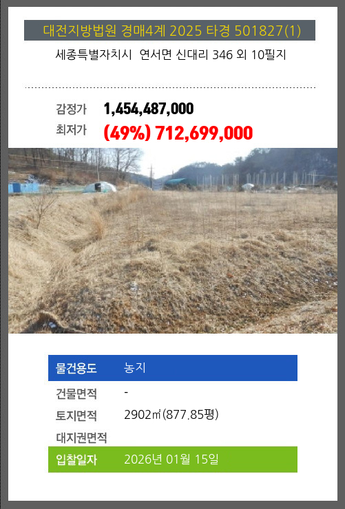 | 소재지 | [지번] 세종특별자치시 연서면 신대리 346 외 10필지 | ||||
