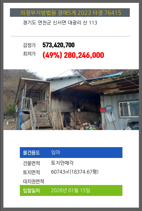연천임야경매 연천군 신서면 대광리 산 113 №2023 타경 76415