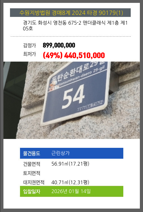 화성상가경매 화성시 영천동 675-2 앤더클래식 제1층 제105호 №2024 타경 90179(1)