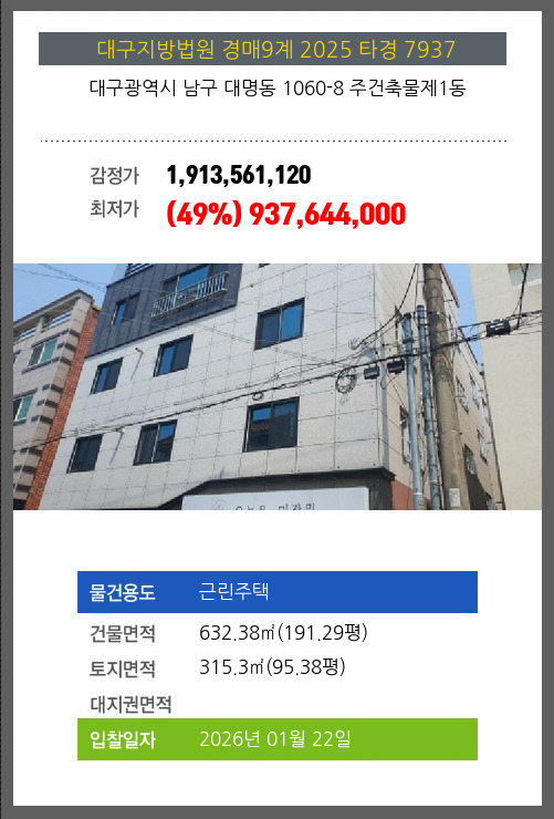 본건은 대구광역시 남구 대명동 1060-8 주건축물제1동