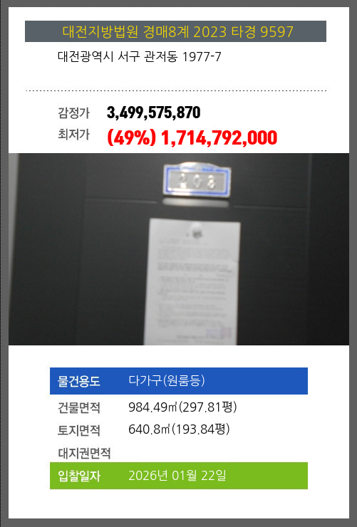 | 신건 | 2024-10-10 | 3,499,575,870 | 유찰 |