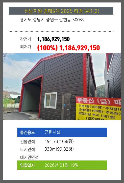 성남시설경매 성남시 중원구 갈현동 500-8 №2025 타경 541(2)