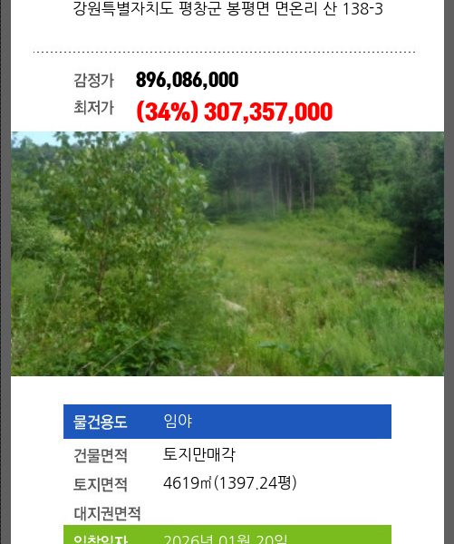 토지면적 1402㎡ (424.1평) 소유자 김** 보증금 (10%) 48,989,300