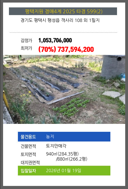 평택농지경매 평택시 팽성읍 객사리 108 외 1필지 №2025 타경 599(2)