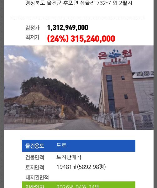 | 신건 | 2025-05-23 | 1,446,724,820 | 유찰 |